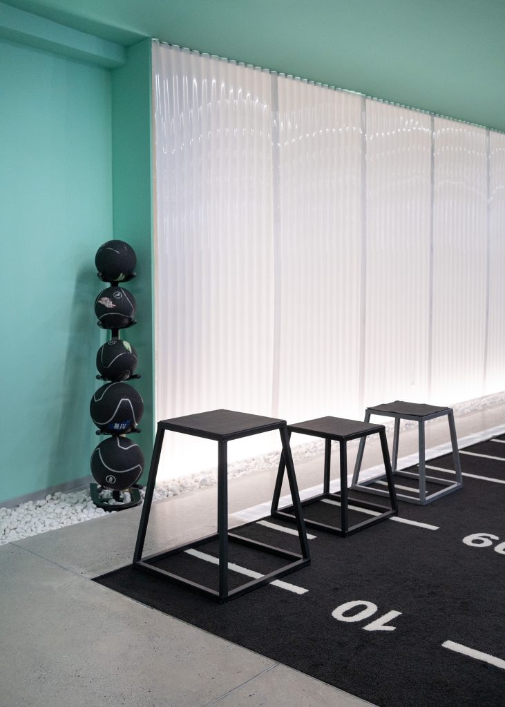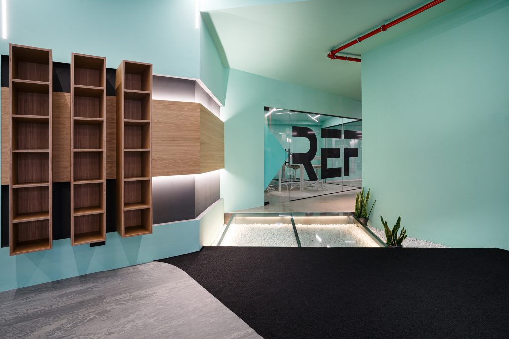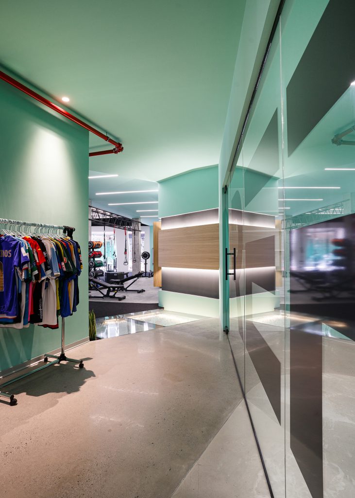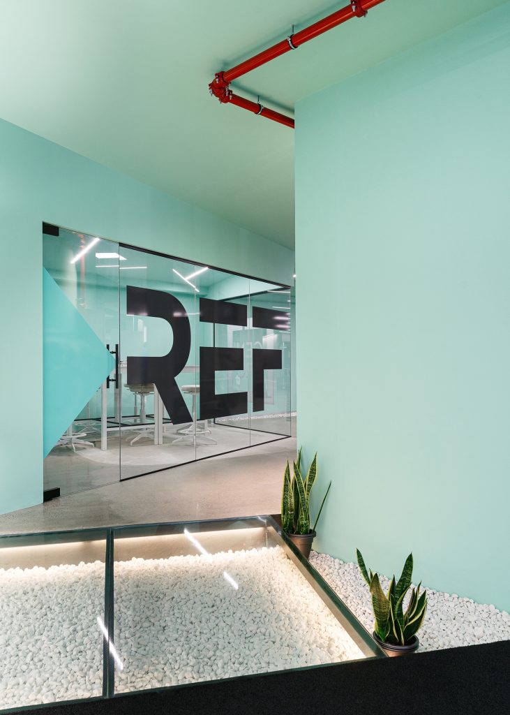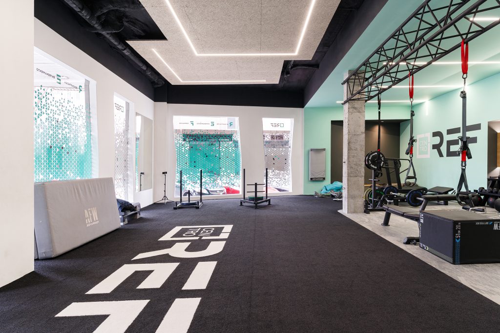 El proyecto a realizar se enmarca en una actuación para la ampliación del Centro Deportivo REF. Las líneas maestras de la intervención transcurren paralelas a las ya fijadas en el proyecto primario, añadiendo un nuevo espacio al existente, donde se mantiene la continuidad identitaria para alterar lo menos posible la idea principal del lugar. Esta identidad se refuerza en la nueva zona, al ser un espacio diáfano que permite apreciar la conexión entre los dos sectores, remarcada por una pasarela de vidrio retroiluminada que señala dónde termina lo existente y comienza lo nuevo. La pasarela surge como un elemento disruptor, pero a la vez funciona como un puente que conecta ambos espacios, integrándolos en un todo.