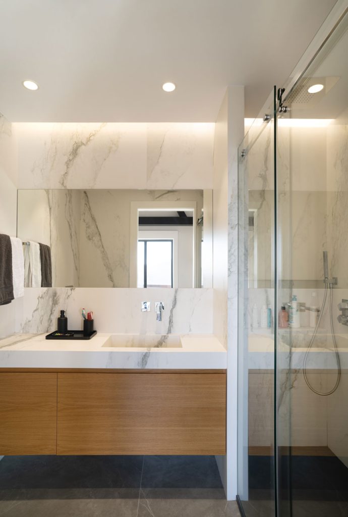 Uno de los principales objetivos de la reforma ha sido potenciar la conexión entre el interior y el exterior, disponiendo de ventanales que permiten la entrada de luz natural y enmarcan vistas privilegiadas del entorno. Estos elementos no solo mejoran la iluminación, sino que también refuerzan el diálogo entre la vivienda y su entorno, integrando la naturaleza en el día a día.