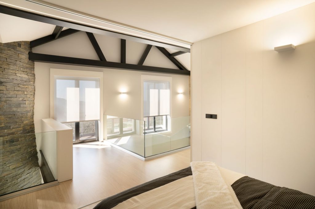 La iluminación indirecta, los acabados de alta calidad y el mobiliario cuidadosamente seleccionado refuerzan la sensación de confort. Se ha buscado un equilibrio entre funcionalidad y estética, logrando un espacio acogedor que mantiene el espíritu de la construcción original.